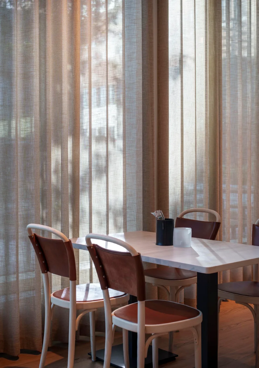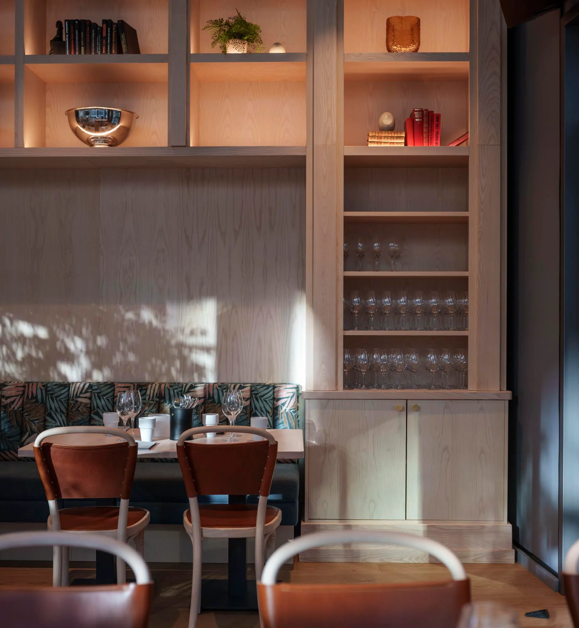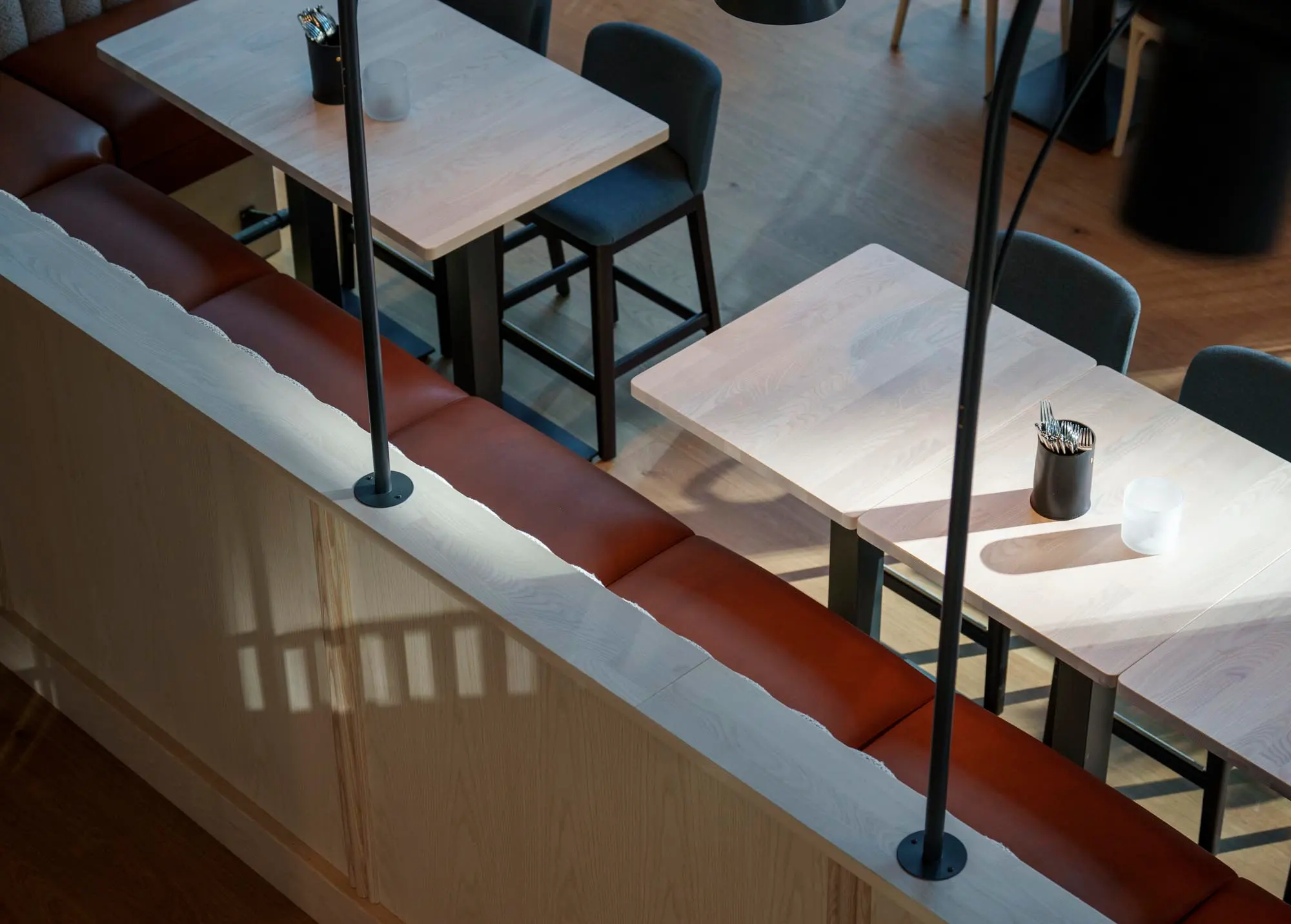 Konceptet vi tog fram är utformat för att hålla över tid, både funktionellt och estetiskt. En specialdesignad akustikvägg bidrar till rumsupplevelsen och skapar en behaglig ljudmiljö. Uppdraget omfattade projektering och ritning samt leverans av köksutrustning, inredning och belysning, där varje del samverkar i ett varierat rumsligt uttryck anpassat för olika typer av vistelse och tempo.